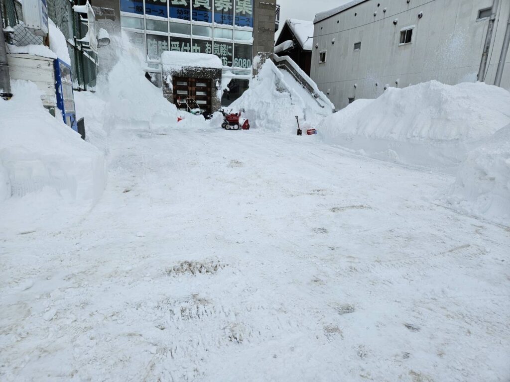 今は昔と違い、融雪口もなく、少し雪が降るだけでも雪の捨て場に頭を悩ませる。